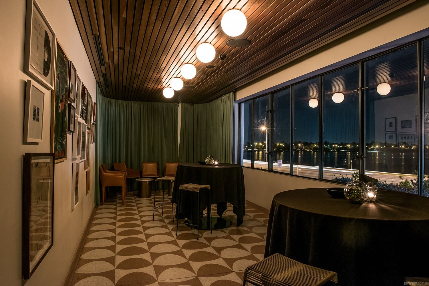 The function space consists of a bar area for tasting our wonderful selection of beverages, and a dining or nibbles spot which overlooks the majestic Swan River. The decor is modern and classic with a touch of art deco.